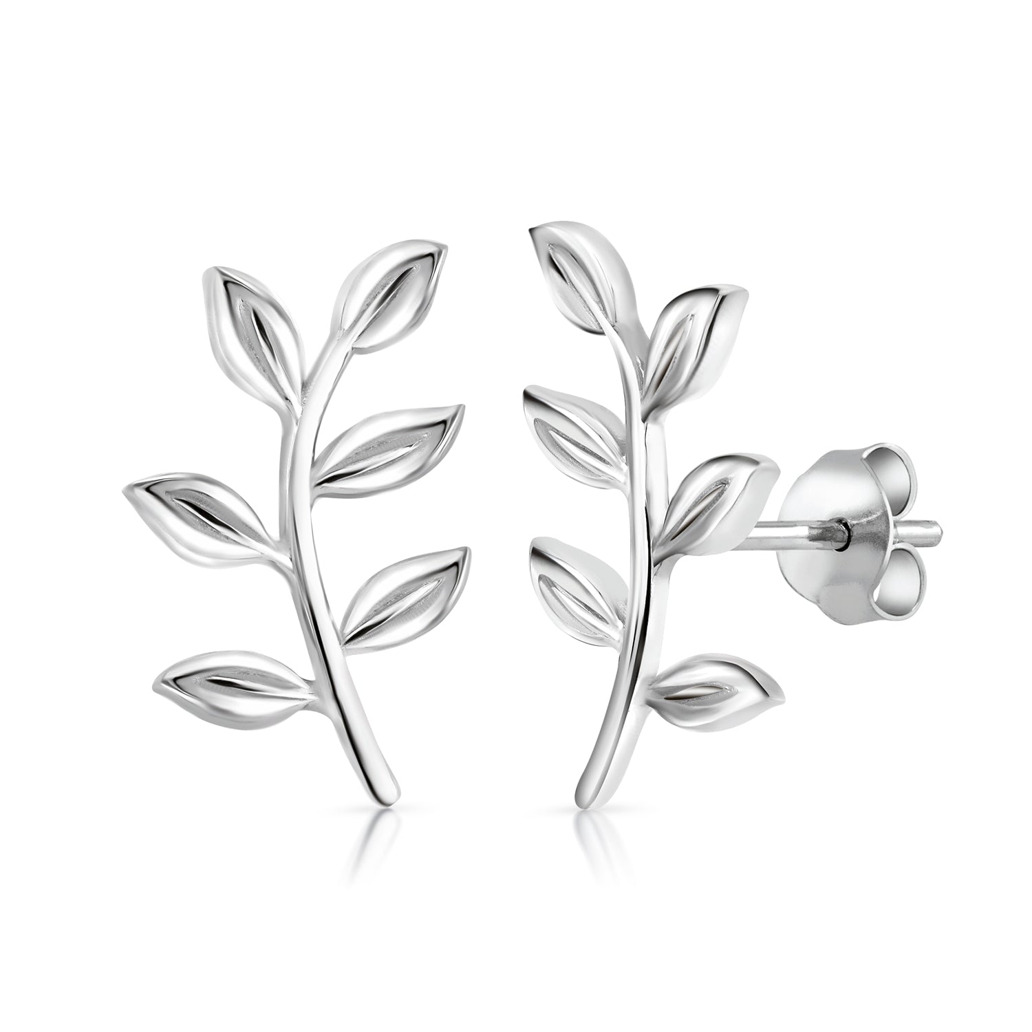 925 Sterling Silver Leaf Stud Earrings for Women, Dainty Vine Climber Style Studs, Hypoallergenic Minimalist Botanical Jewelry Gift