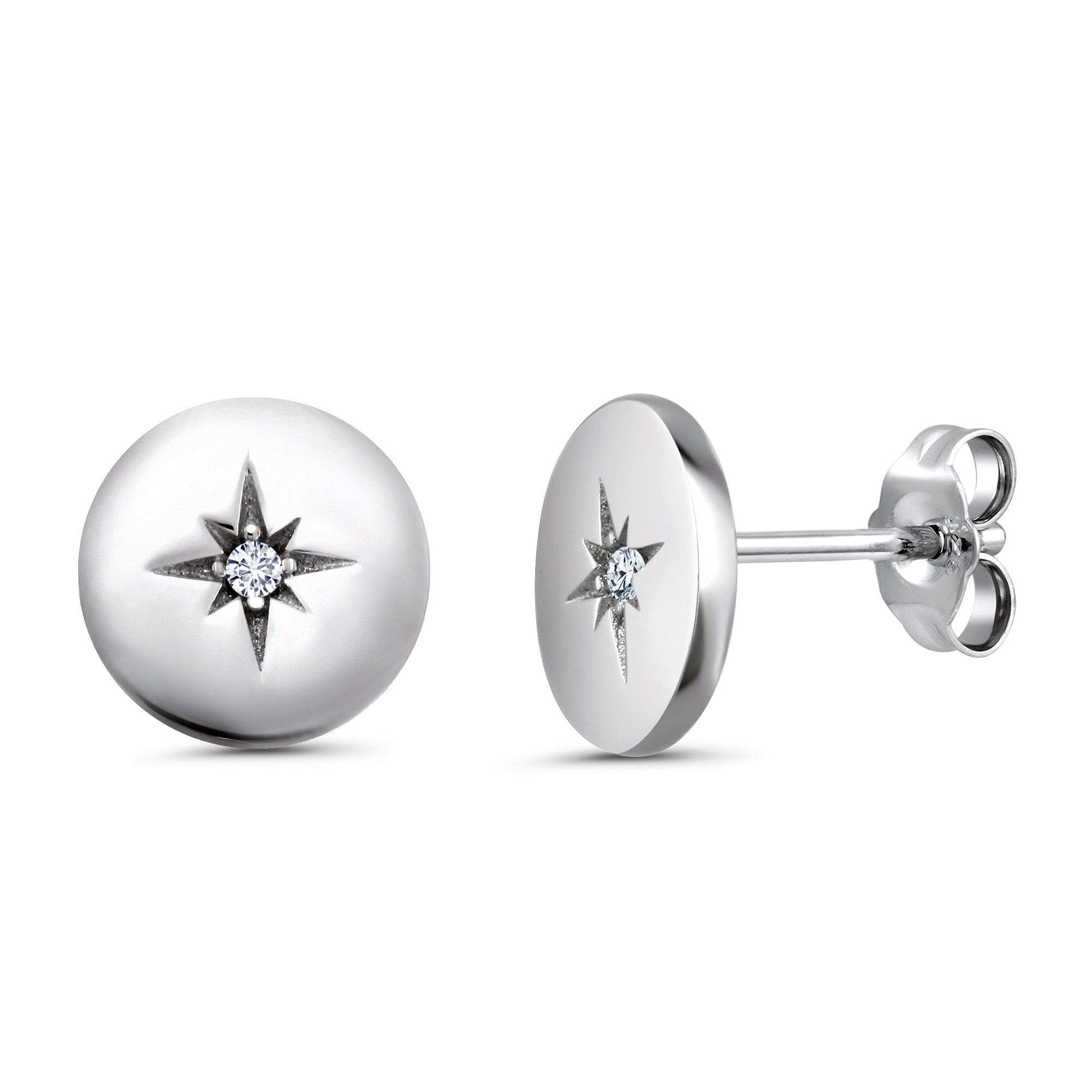 925 Sterling Silver Disc Crafted Studs, Star Crafted On Disc Stud Earrings, Hypoallergenic Studs, Star studs Earrings, Modern Studs