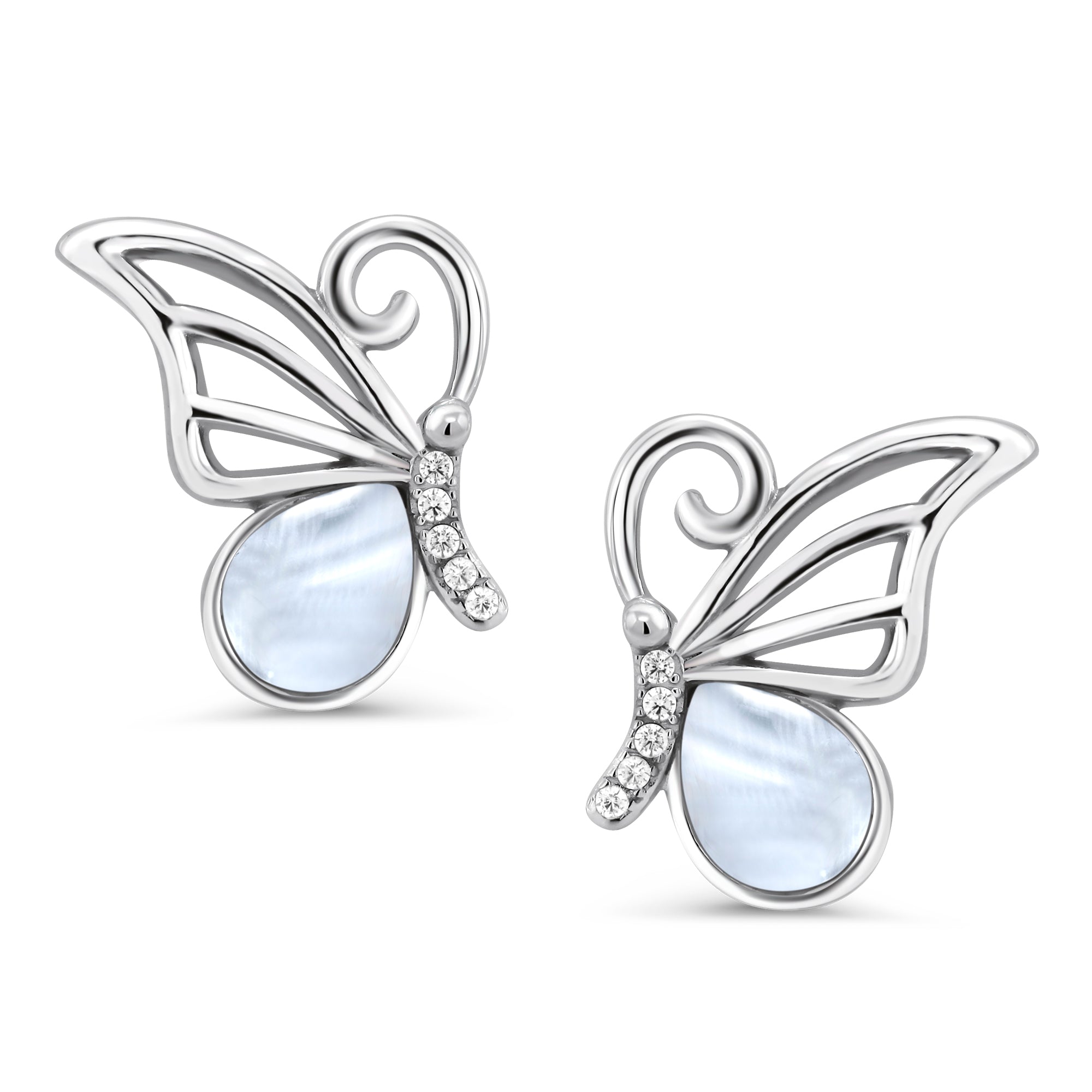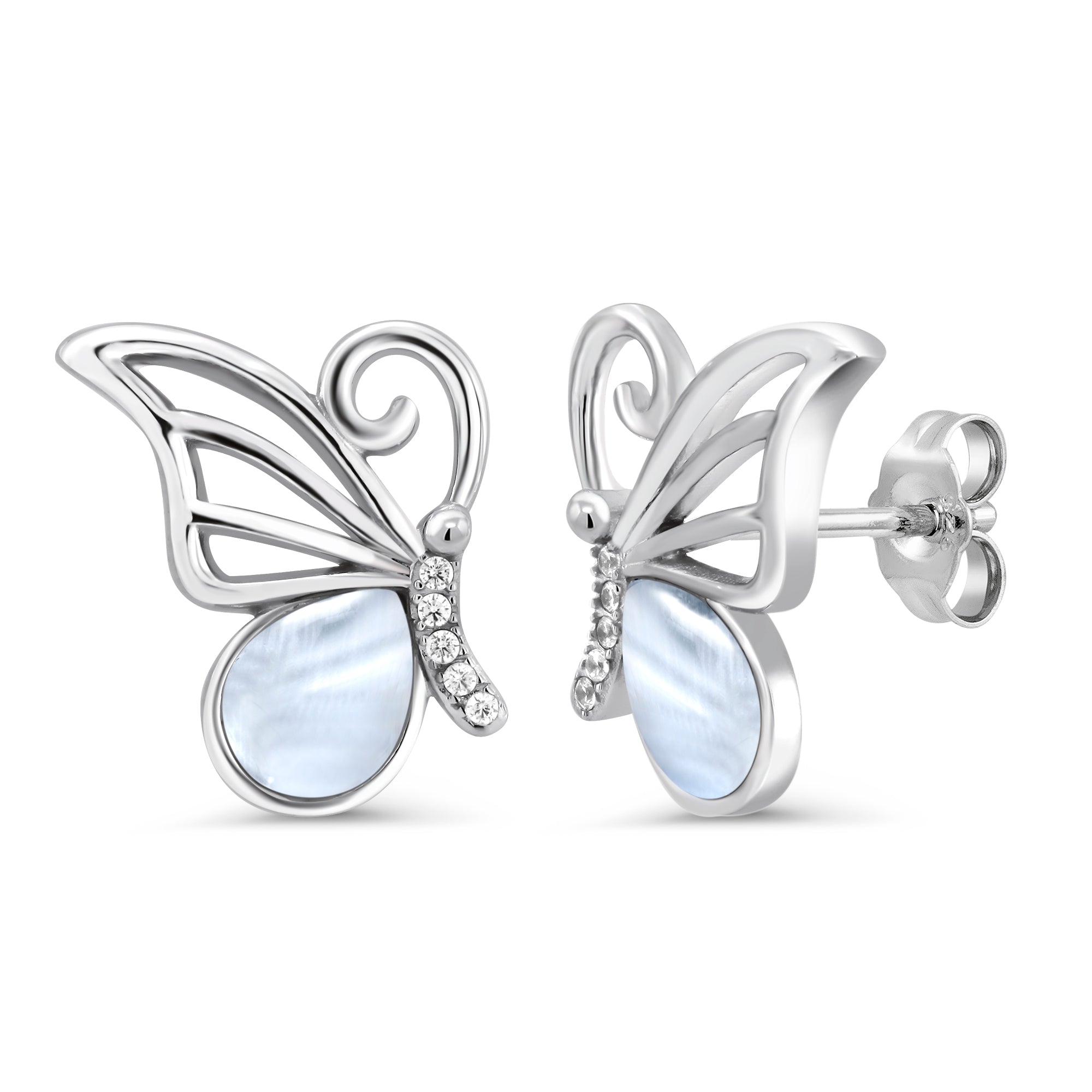 925 Sterling Silver Butterfly Stud Earrings for Women with White Cat's Eye Stone & AAA CZ, Dainty Hypoallergenic Animal Jewelry Gift for Girls, Teens