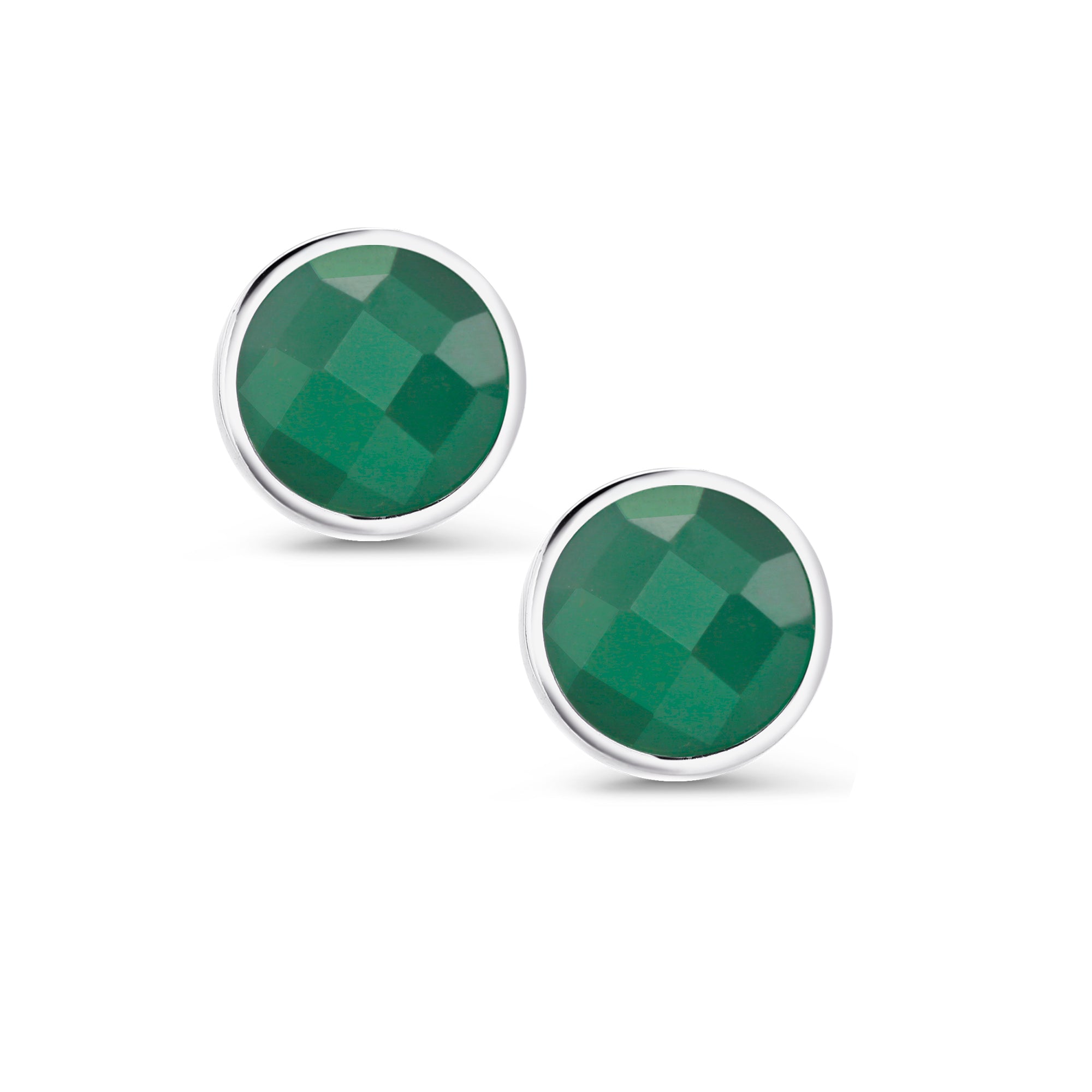 925 Sterling Silver Green Chalcedony Studs Earrings, Simulated Chalcedony Stud Earrings, Bezel Setting Stud Earrings, Hypoallergenic Studs, Classic Jewelry