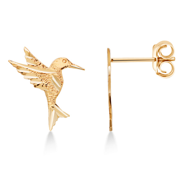 14K Solid Gold Hummingbird Earring Stud, Gold Hummingbird Stud Earring, Origami Bird Stud, Bird stud Earring, Bird Jewelry.