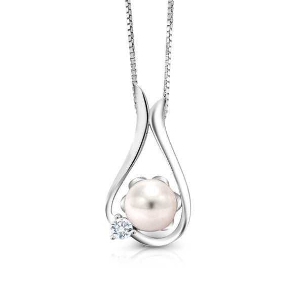 925 Sterling Silver Freshwater Cultured Pearl Pendant - 18' Chain, Freshwater Cultured Pearl and CZ Pendant, Pearl Jewelry, Silver Pendant