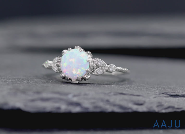 Vintage Opal Ring, Opal Engagement Ring, 925 Sterling Silver Opal Ring, Simulated Opal Ring, Opal CZ Rings, Opal Ring Jewelry