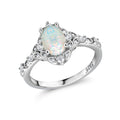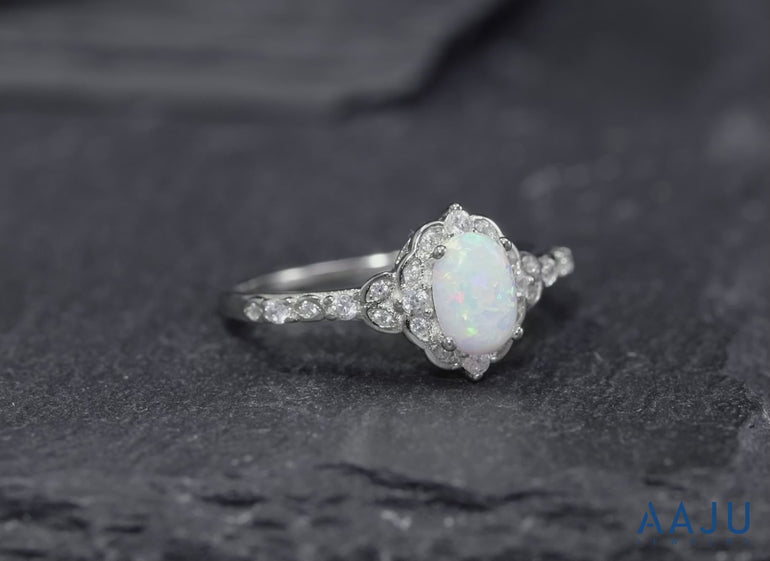 925 Sterling Silver Created Opal Ring, Created Opal Ring, Opal Engagement Ring, Halo Opal Ring, Opal CZ Rings, Silver Jewelry